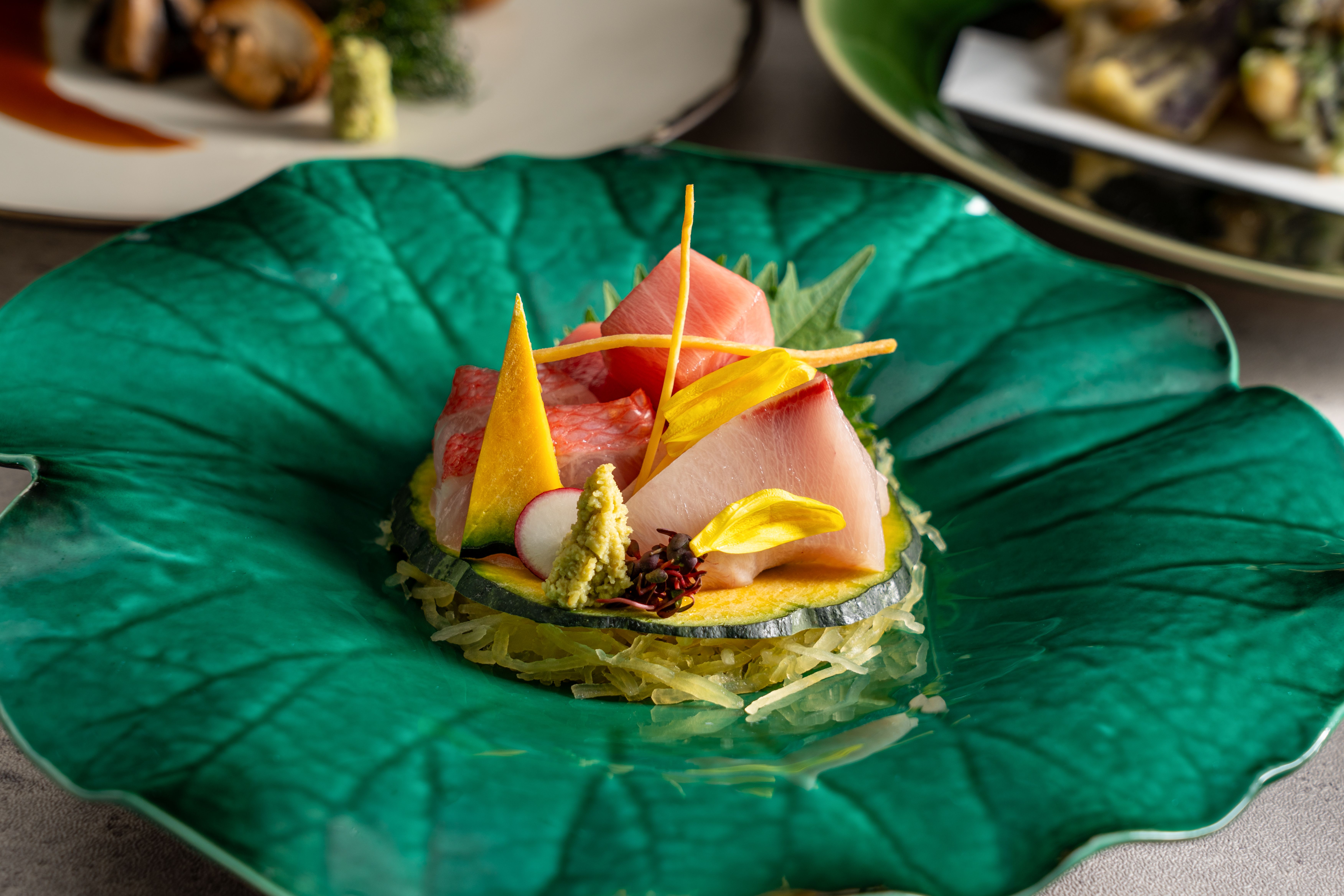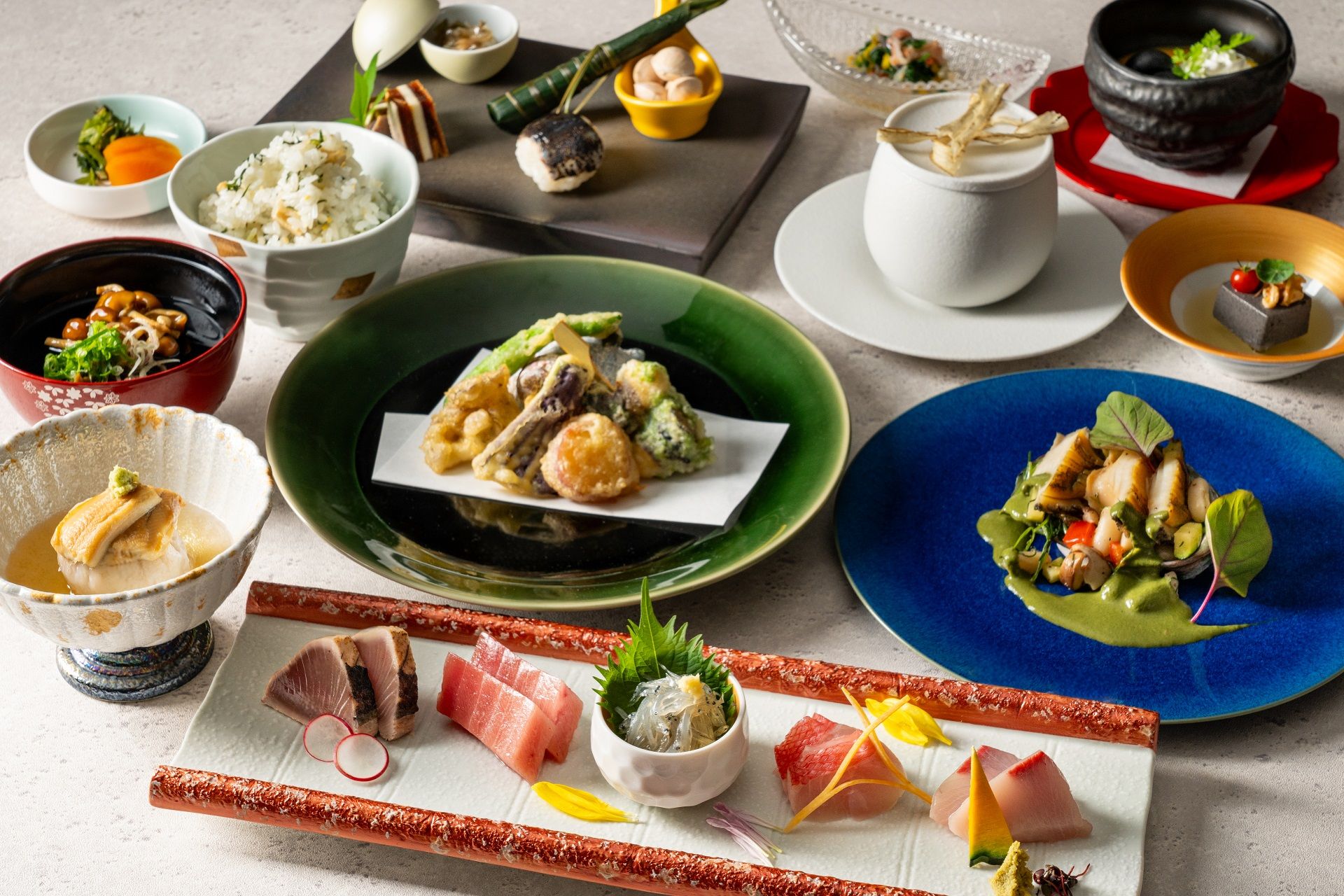 The bright and calm interior of the restaurant creates an atmosphere where you can feel the essence of Japanese style. From inside, you can enjoy a panoramic view of the sea while savoring Japanese cuisine made using seasonal ingredients. You will be served an assortment of seasonal fish and a variety of dishes that showcase the meticulous skills of our craftsmen, tailored to the time. We also offer courses for infants and elementary school children, making it a safe space for families with young children.