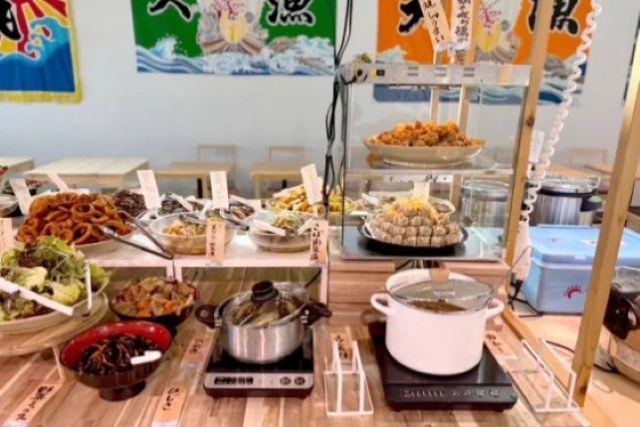 "Gyoko Shokudo" inside the Kawagoe Wholesale Market is an all-you-can-eat seafood cafeteria where you can fully enjoy fresh sashimi, fried foods, side dishes, and desserts. Starting with thick-cut sashimi delivered directly from the market, a variety of dishes are lined up, each with a simple yet robust flavor that brings out the quality of the ingredients. While feeling the lively atmosphere of the morning market, please enjoy lively seafood dining time with your family and friends.