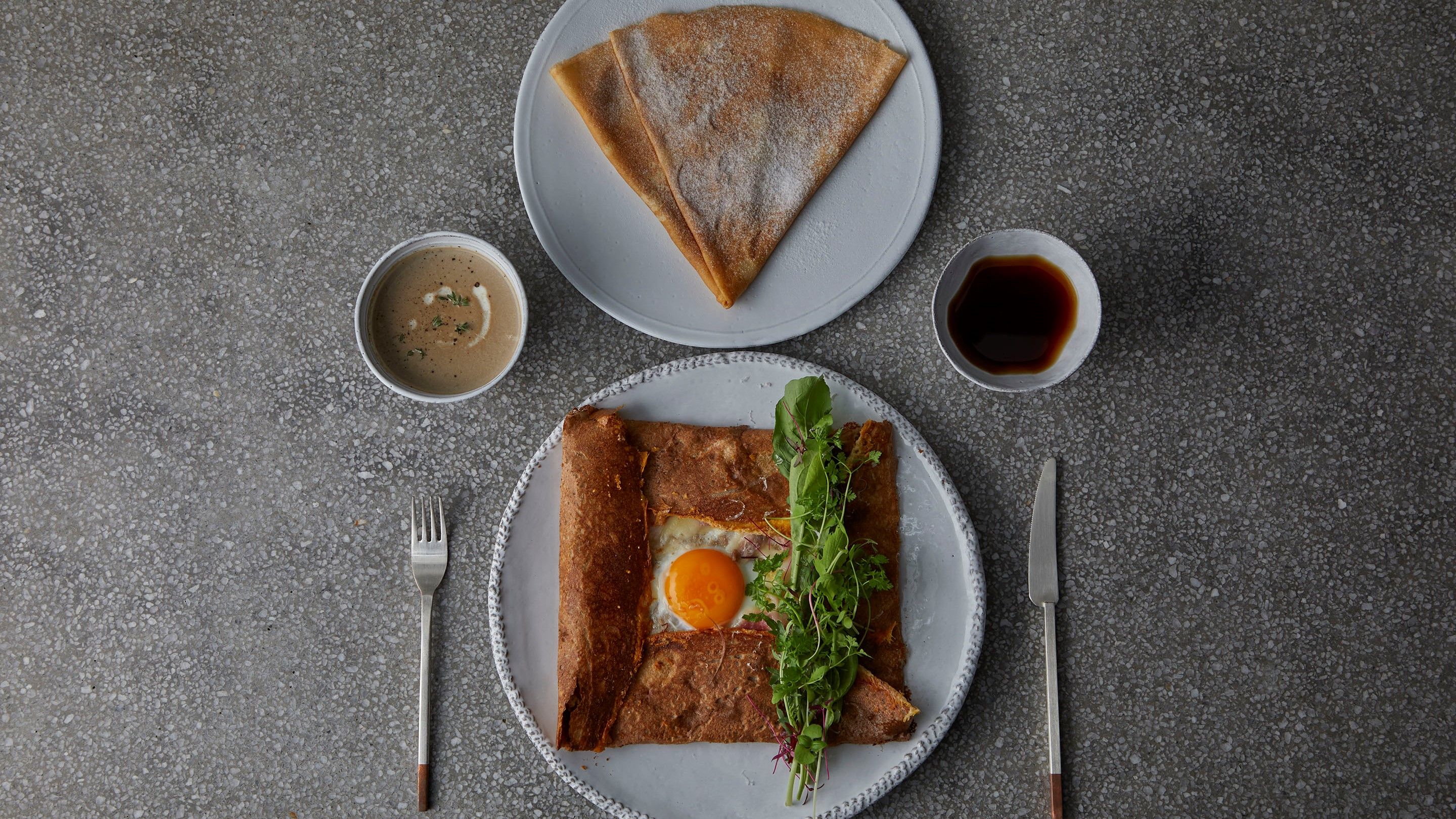細い階段の先にあるのは、スイーツを楽しめる特別な空間。モノトーンを基調とした店内は、窓からの光を取り入れ、落ち着いた雰囲気です。オープンキッチンスタイルのカウンター席で調理の様子をご覧いただけます。シェフパティシエールが提供する見た目も美しいこだわりのパフェやケーキ、オリジナルスイーツをお楽しみください。また季節のスープやガレットもご用意。洗練された空間で、モーニングからランチ、ティータイムと幅広くご利用頂けます。