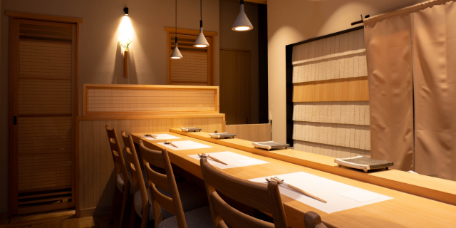 秋葉原のメイン通りから外れた落ち着いた雰囲気のある立地にあります。メニューはお任せコースのみで、旬の魚を活かした満足感のあるお寿司や一品料理などです。席はカウンター6席と席の個室テーブルです。人数に応じて貸切が可能で、ビジネスシーンやイベントごとにも利用しやすい席配置になっております。