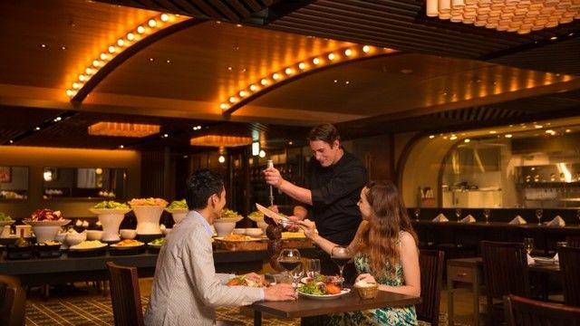 ウッド調のフローリングや家具を中心とした落ち着いた開放感ある雰囲気の店内中心には豊富な品揃えのサラダバー。お好みのお野菜をたっぷりお楽しみ頂けます。そしてバルバッコアの代名詞ともいえる「シュラスコ」に代表される本格ブラジル伝統の肉料理たち。 肉汁いっぱいの牛・鶏・豚肉の塊を鉄串に刺したまま炭火でじっくり焼き岩塩や専用ソースで味付け。スタッフが各テーブルを回り直接サーブいたします。お肉以外にもチーズやソーセージ、パイナップルなどの串焼きも絶品です。