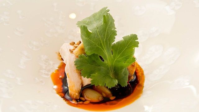 重厚な木の扉を開けると、そこは落ち着いた大人の空間。広々とした木のカウンターテーブルに囲まれた、ライブ感のあるオープンキッチンが自慢です。数々の中国料理コンクールの受賞歴を持つシェフが提供するのは、少量多皿の創作中華。旬の素材を使い、彩りや器にまでこだわった、さまざまな食感や味わいをお楽しみください。もちろん、お料理にあわせたお酒や中国茶のペアリングもご用意しております。