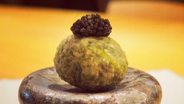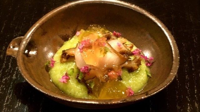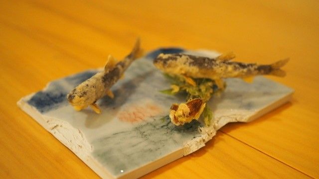店内は銀杏の一枚板を使ったテーブルに竜胆の光が差し込む、温かみがあって落ち着いた雰囲気。日本料理四四A2では、そんな落ち着いた大人の空間で日本料理が楽しめます。お料理は、その時期の旬の魚介と野菜を中心に使ったコース形式でご提供。日本料理の伝統技術や、食材が生産された土地の文化をお料理を通してお楽しみください。また、お酒はお料理に合った日本酒やワインをご用意しております。