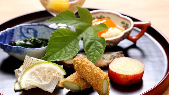 都心の有名高級住宅街に建つビルの地下一階にある店内に入ると、土壁の聚楽壁や瓦材の床、多様な木材を使用した純和風の空間が広がります。メニューはランチディナーともに、コース料理のみです。木のぬくもりを感じる空間で出される料理は、店主が厳選した旬の食材を使用。熟練の技術で調理し、食材の味を最大限に生かした最上級の日本料理が堪能できます。飲み物もビールやワイン日本酒など豊富に取り揃えていますので、料理と一緒にお楽しみください。