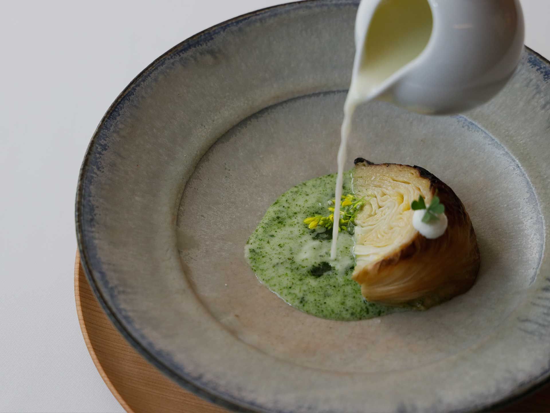 数々の京都名所の近くにありながら、古都の静けさと日本人の馴染みやすさを帯びた上品さに包まれる店内。暖炉の火が揺らめく癒やしの空間を楽しみながら、特別な時間と食事に満たされるイノベーティブレストランです。豊富な地下水に恵まれた地で、神戸や東京の有名レストランで修行したシェフが、炭火やこだわりの水を使って調理をしています。食材は日本では珍しい品種の香辛料や季節の新鮮なものを使用し、活きているものの精細な美しさと瑞々しく繊細な滋味を深く味わえる料理を提供しています。