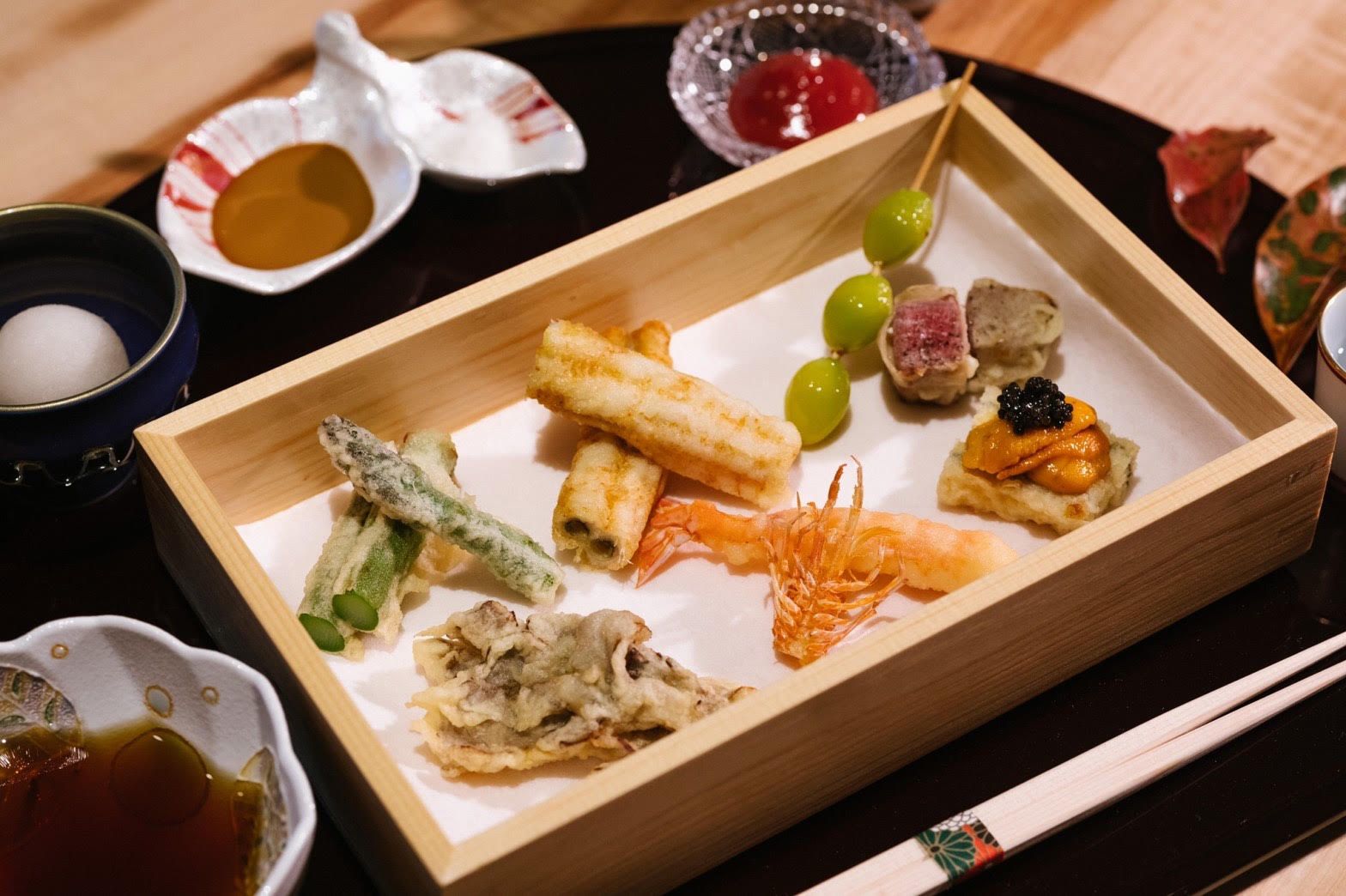 「串かつ凡」の新展開。世界に本物の日本食文化を世界へ… 『天婦羅ぼん次』が考える最高の天婦羅の条件。それは、「素材」・「油」・「温度」・「心」・素材は四季折々の旬1番の食材を厳選・油は、油の王様「綿実油」をベースにオリジナルブレンド・温度は、職人の技で常にカラット揚がる温度を実現。高級割烹並みの食材の数々を惜しみなく使った天婦羅をぜひご堪能下さいませ。